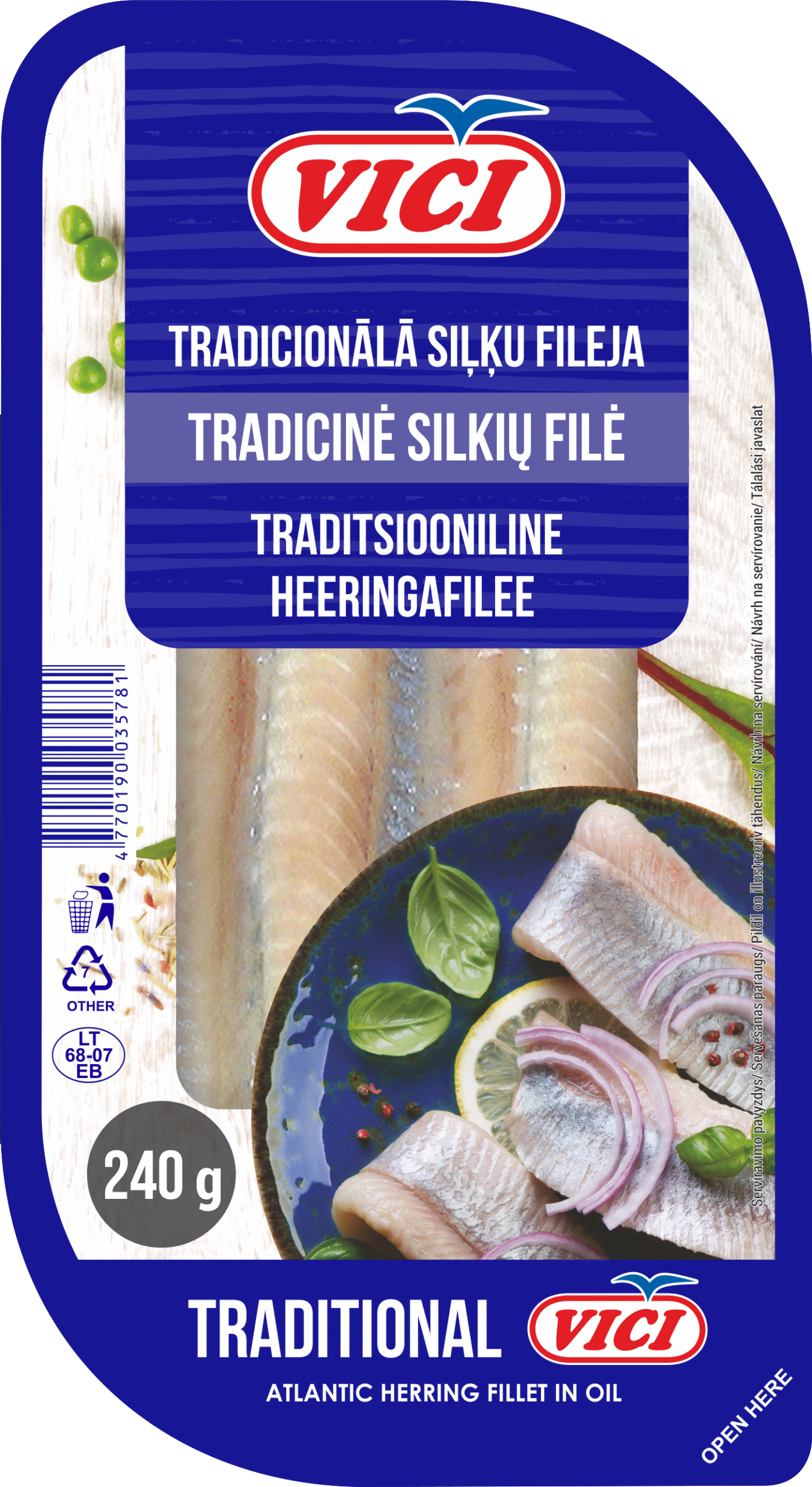Tradicionālā siļķu fileja, Viči, 240 g / 190 g